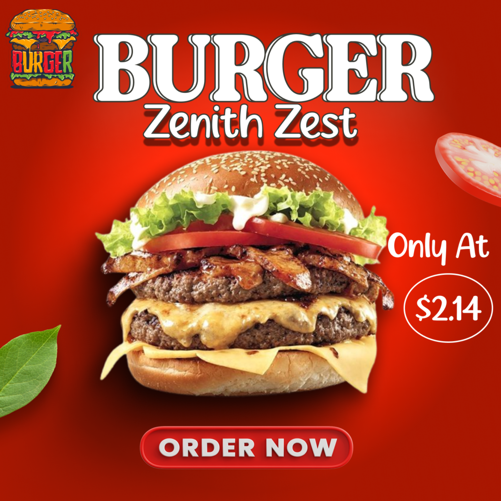 Tinggalkan Komentar / Oleh Danpras / 26 Agustus 2024 Ads Poster This is a multimedia project that is making an advertising poster about a fast food, namely a burger, here I named this burger Zenith Zest Burger. I made this design in figma