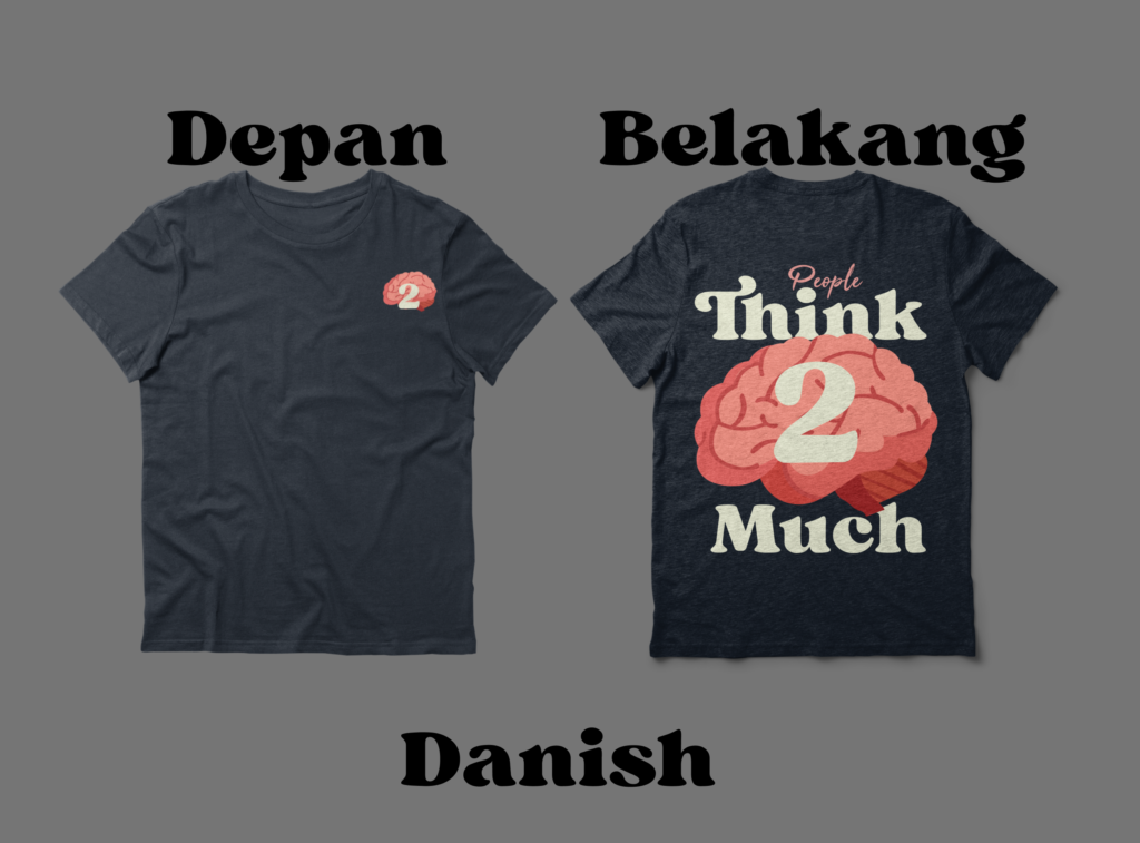 This is my multimedia project, which is making a Free shirt. Here I just make a regular shirt, only the writing is what people think too much, The meaning of these words is that people think too much without doing what they are thinking. I made this design with Figma.