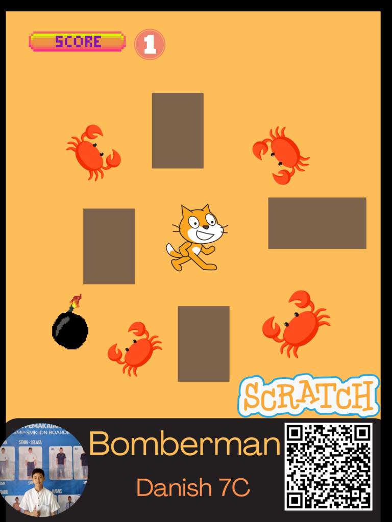 Tinggalkan Komentar / Oleh Danpras / 6 November 2023 Bomberman Ini Adalah Game Scrtach Terakhir Yang Aku Buat Di Semester 1 Kelas 7Cara Bermain :Hindari Terkena Oleh Kepiting Dan Ledakan BombGunakan WASD Untuk BerjalanGunakan Space Untuk Menaruh BombKalahkan kepiting Dengan Cara Meledakanya